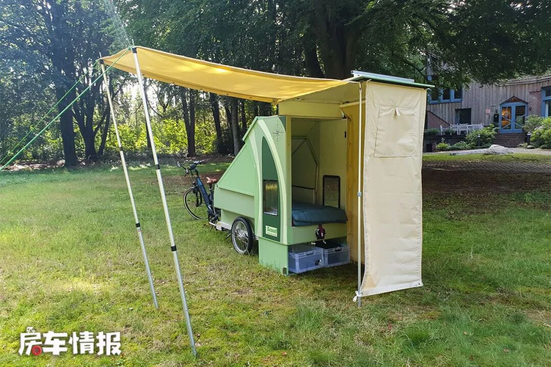 说到拖挂式房车,大家首先想到的肯定是那些用皮卡牵引的大尺寸房车,内部空间非常充裕,俨然就是一个行走的家。但是,用自行车也能牵引的房车你见过吗?近日,海外的一家房车公司Scout就推出了一款和自行车配套使用的房车,一起来看看吧!