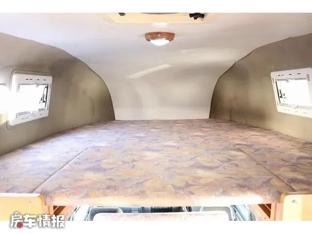 驾驶室上方依然是一张额头床,整张床位的尺寸比较大,已经达到了1900*1600mm,可以轻松满足2名成年人在这里休息,再加上较高的车顶,垂直空间也很不错。
