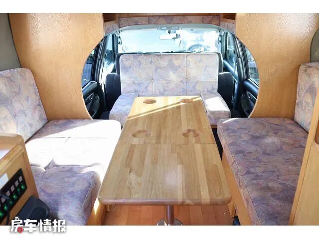 位于车厢中部是一组四人对坐沙发,空间表现不错,可以满足4人在这里休息用餐,通过前方的小窗口还可以和驾驶室内进行互动,方便拿取物品。