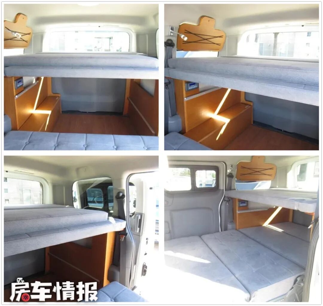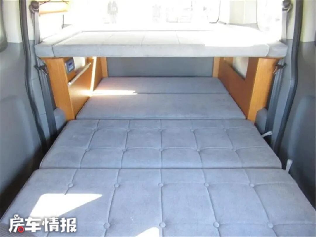 车尾还布置了双层儿童床,还可以将卡座拼床打开,形成更加宽敞的睡卧空间。