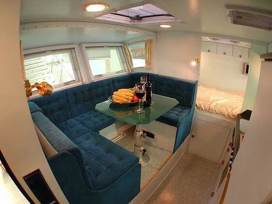 同样的,弹出部分依旧是车上的卡座沙发区域,U型沙发座椅空间比较大,日常乘坐也很舒适,夜晚睡眠的时候还可以拼成沙发床。