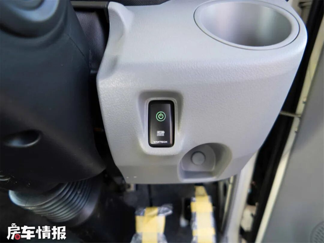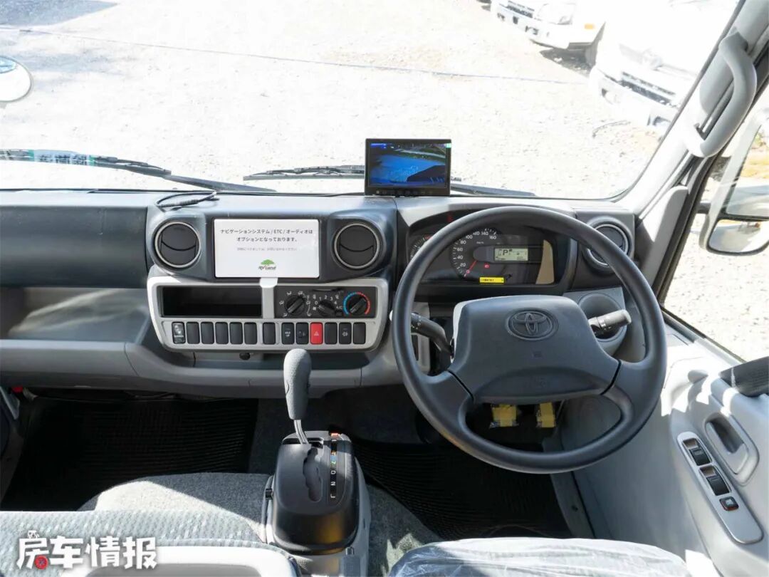 本车基于丰田CAMROAD底盘生产的C型大顶房车,采用了3.0T柴油涡轮增压发动机+4AT自动挡,最大功率106kW,峰值扭矩达到300N.M,动力强劲。排挡杆可以在不用时折叠收起来,不占用额外空间,非常巧妙。驾驶室设置了双排座椅,带有一键启动、ABS、倒车后视/雷达、安全气囊等实用功能,保证一家人的行驶安全。