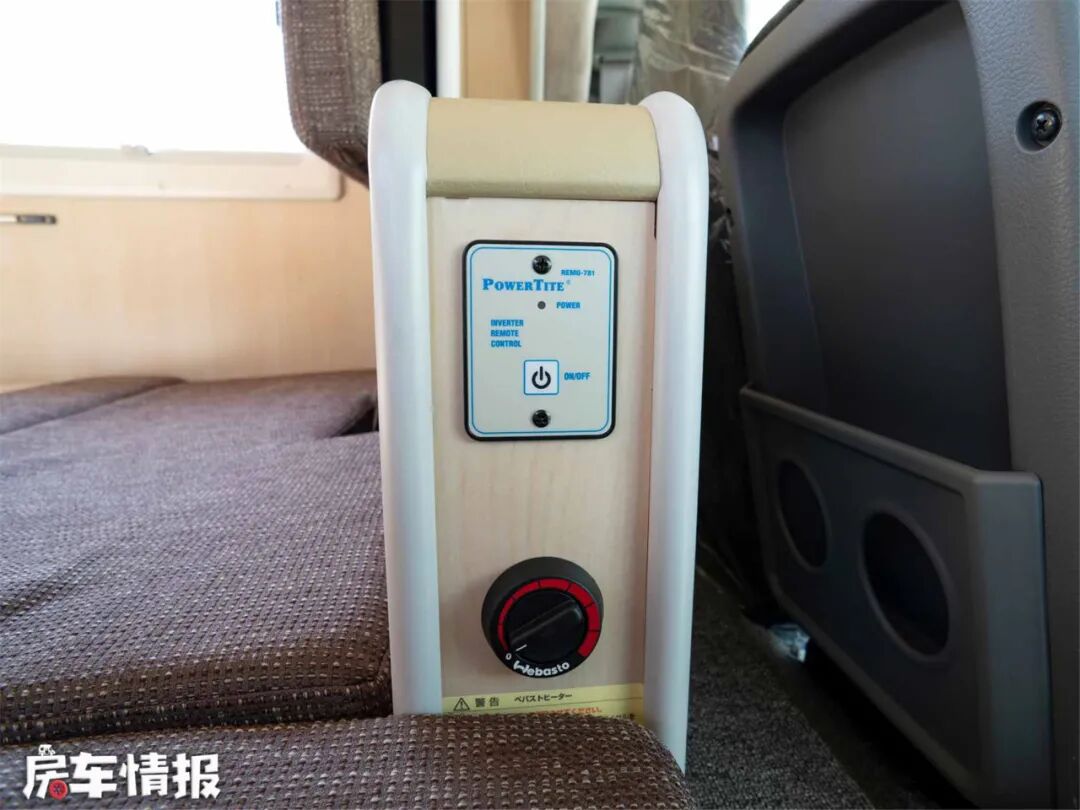 水电配置方面,采用了主、副蓄电池组+1500W逆变器,水路搭配20L清水箱+20L废水箱。采用了侧壁式空调和伟巴斯特燃油加热器,还可以配合车头的行车冷暖空调使用。