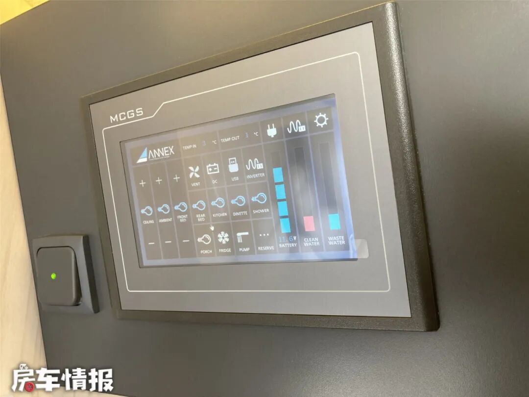 水电方面,本车采用了大容量的锂离子电池+太阳能板+逆变器,即使不使用外部110V电源,也能使用车内电器。水路配备了80L清水箱+废水箱,可以提供一家人的水电需要。
