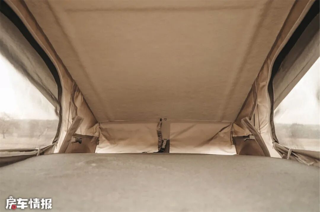 弹出式车顶形成的双人床,成为了第二休息区。这个大床1850*1110mm,满足2个大人正常休息使用。弹出式车顶在打开时,会产生足够的内部高度;关闭时,车顶会下降到1900mm足够低,可从容地进出地下停车场。