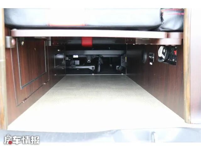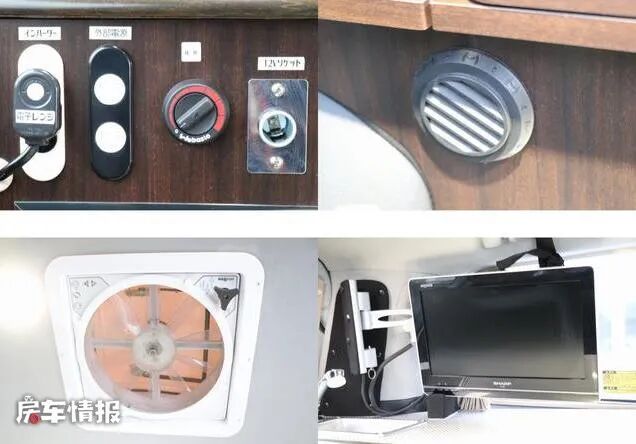 另外在车厢内侧这款车还提供了暖风出口、220V电源接口、电视以及车顶换气扇等设备,进一步提升了驻车以后使用的便利性。