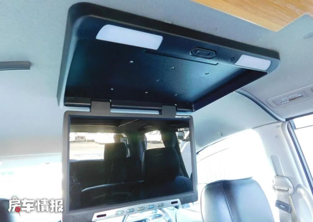 车厢顶部还提供了一台吸顶折叠电视,可以在旅行途中观看自己喜欢的节目,打发一下旅程中的时间。