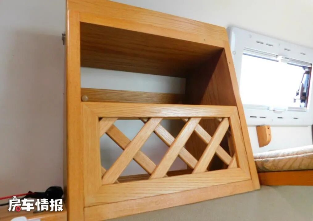 这时候就要用到车顶部的二层空间了。二层空间和下方采用的是一个较大开口的设计,由于车身高度并不是很高,为此进入二层并不需要借助爬梯,还是比较方面的,另外原木色的开口包围也显得比较温馨。