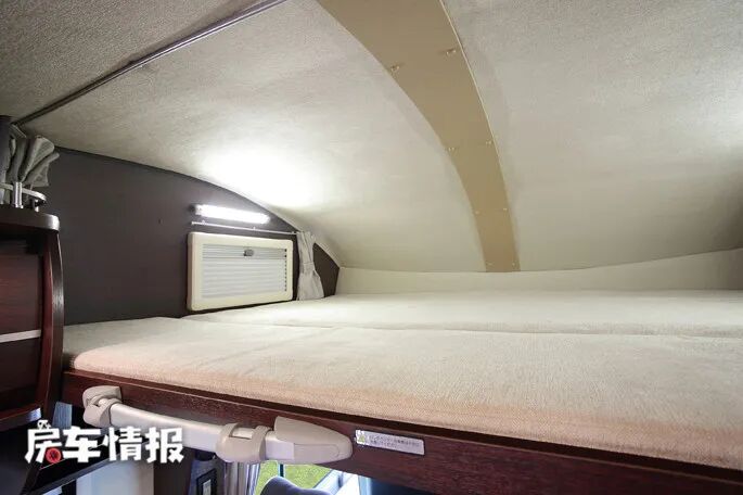 位于驾驶室顶部依然是提供了一张额头床,尺寸很大,基本上达到了1900*1700mm,可以轻松满足2名成年人休息。