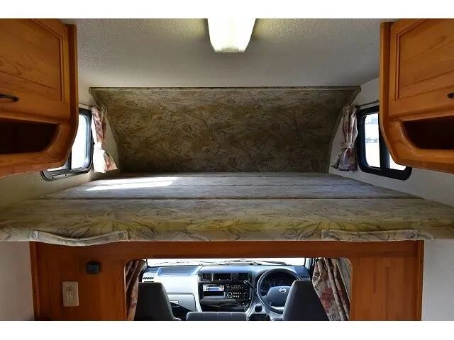 除此之外在驾驶室上方还有一张非常宽敞的额头床,尺寸为1900*1750mm,也能满足2-3人的使用需求,同时左右两侧均配有推拉窗保证采光和通风。