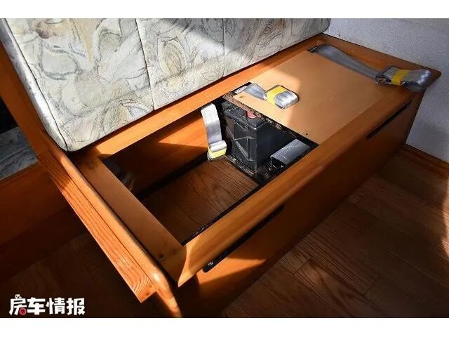 对卡座沙发下方同样也可以用作储物,可放置车内电瓶,或者其他的行李物品。