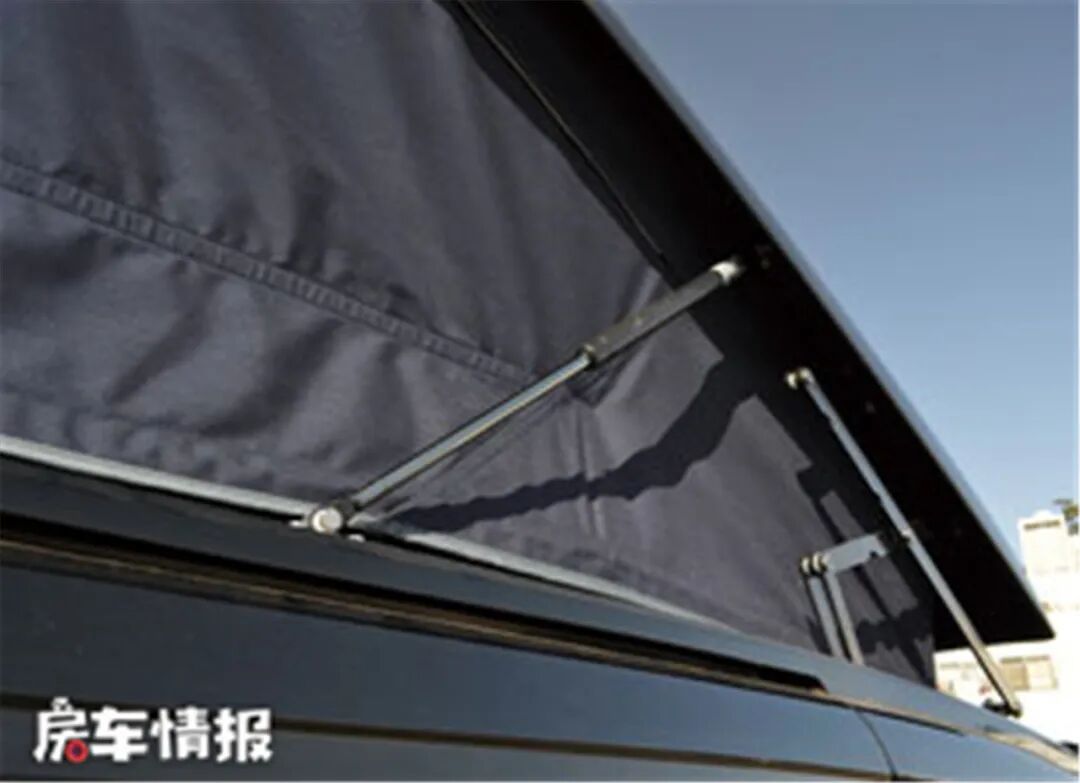 整车大小依然是4740*1720*1980mm,具有MPV的低调外观,和紧凑的车身。车外配备了水、电接口,手动遮阳棚等基本的生活设施。该车采用弹出式车顶设计,升顶后形成了主要的休息、娱乐空间,非常实用。
