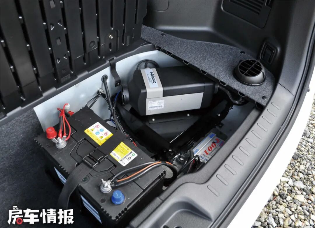 水电方面,装备了100AH主副蓄电池,还可以随需选装车顶太阳能电池板,增大电容量。由于没有设置固定的用水设备,该车没有标配水箱,可选装带有水箱的便携式厨卫设备。暖风和空调方面,该车采用车头标配的行车冷暖空调+行车暖风,还配有单独的伟巴斯特燃油暖风机,驻车也能正保持适宜温度。