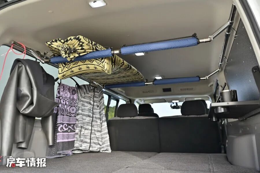 车厢顶部并没有设置常规的储物吊柜,而是提供了一个条形挂架,可以把自己鱼竿稳妥地放在上面,不用担心在行车时意外损坏。