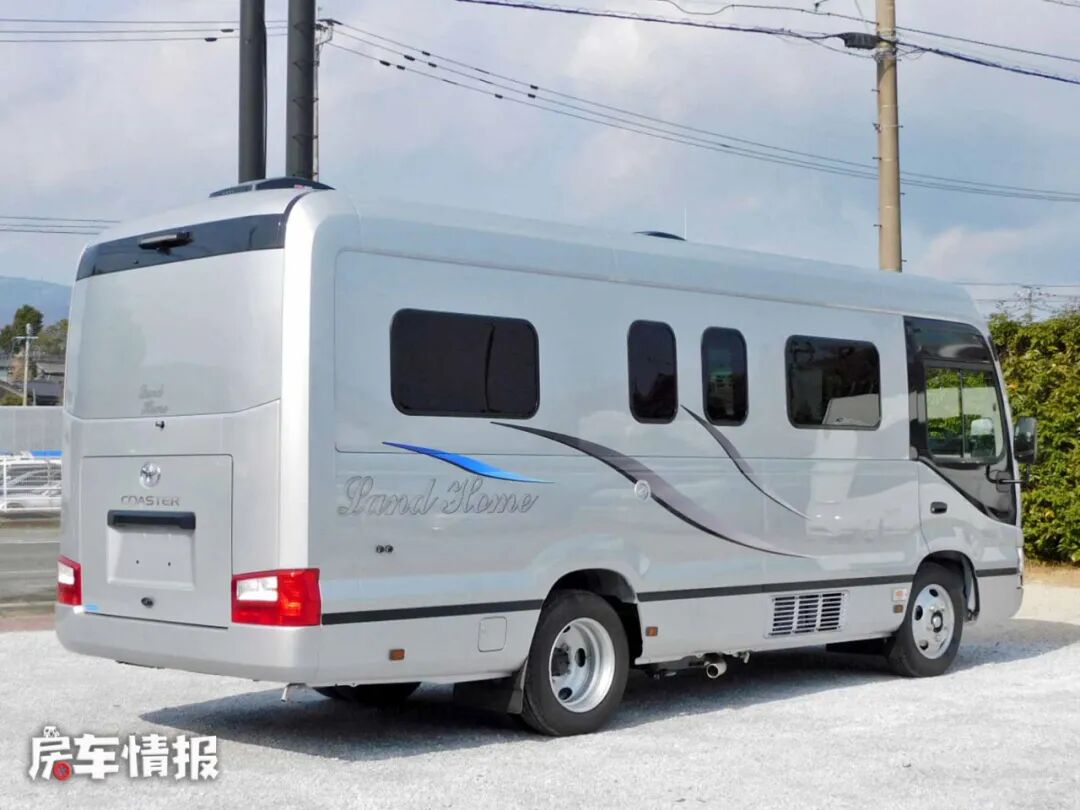 说回这辆新车,这是一款在海外发售的基于丰田柯斯达底盘打造的B型房车,和国内常见的偏重商务属性的车型不同,这款车采用了的是厢货版底盘,为此可以看到车身后方的车窗全部为封闭设计,对于房车而言不仅提升了日常使用的保温私密性,同时也增加了前期内部生产的便利性。