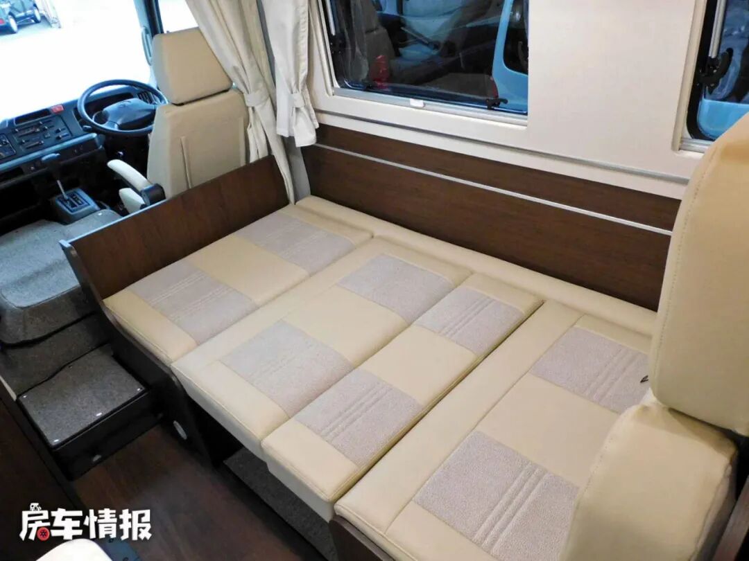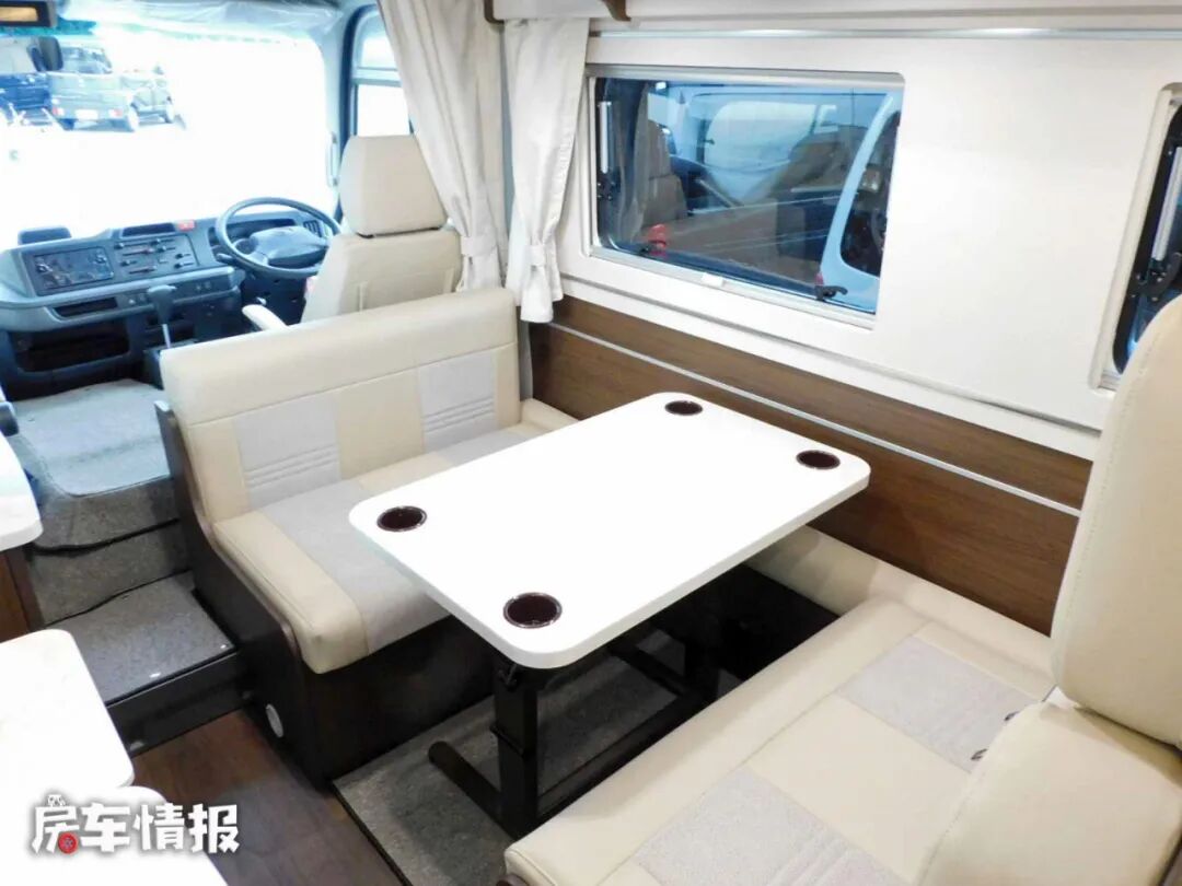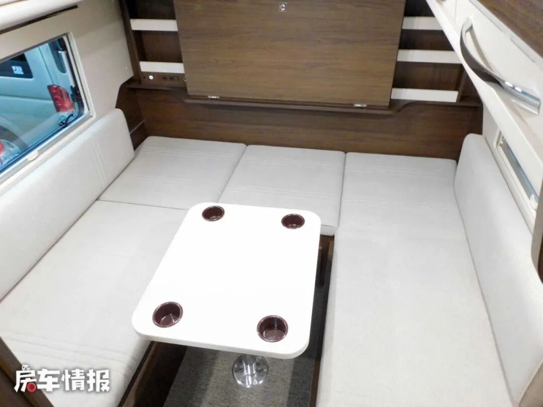 驾驶室后方是车内的卡座沙发休息区,可以满足4人同时在这里休息,宽厚的坐垫对于日常乘坐舒适性有一定帮助。