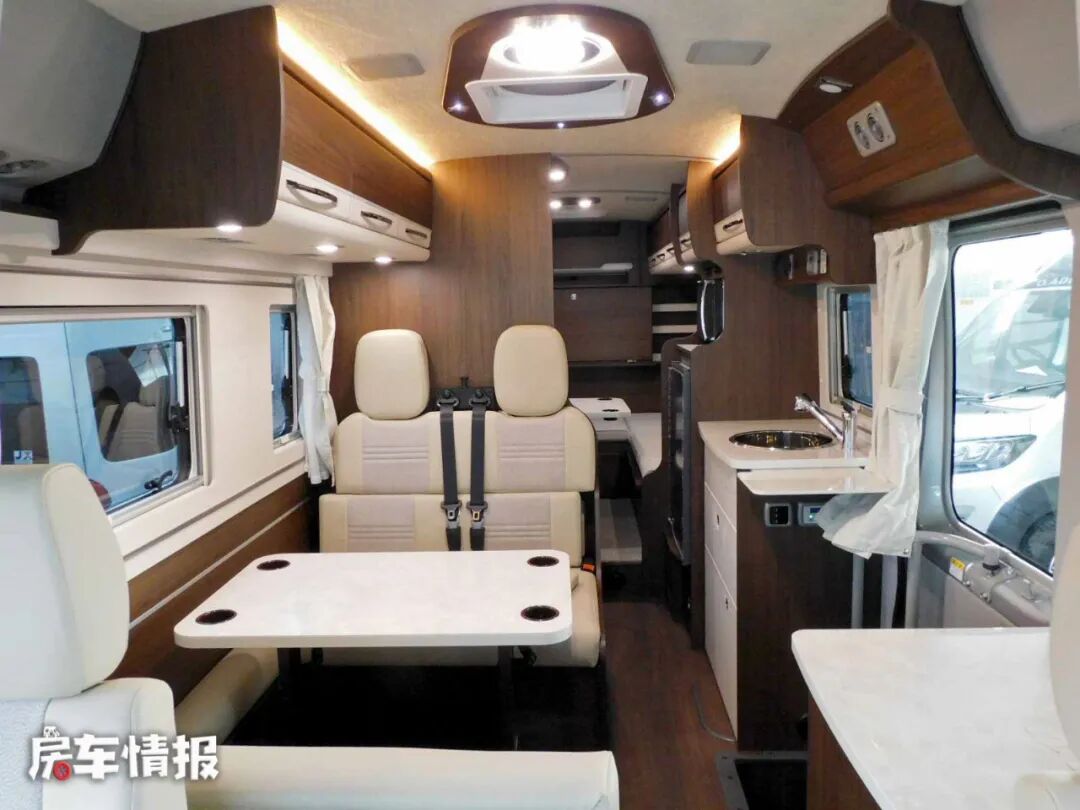 车身尺寸方面,这款车的长宽高分别达到了6255*2080*2740mm,车长已经超过了6米,在国内不能满足C本驾驶,车宽和车高则表现得中规中矩,相较于C型房车在便利性上有一定优势。