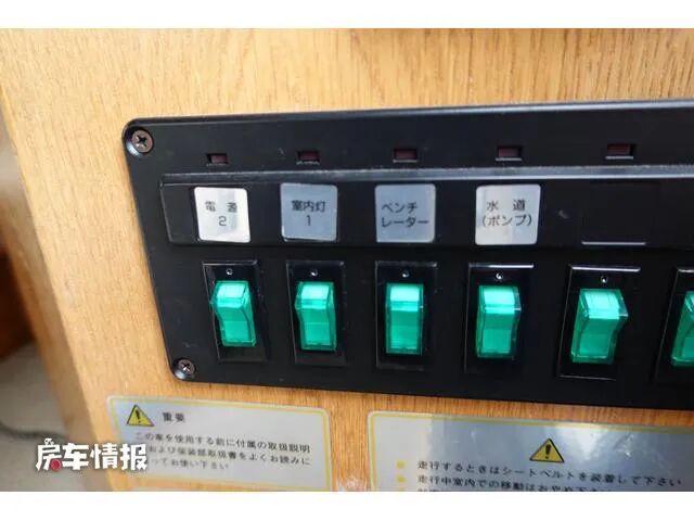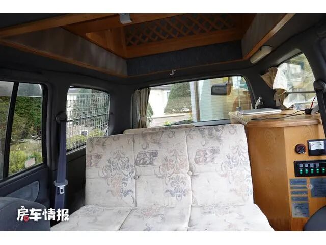 生活区内使用了大量的木质材料,有些复古的感觉,虽然车内空间不大,但是依旧设计了会客区、厨房区以及顶部的睡眠区,除了没有卫生间,其他设施都是很齐全的。