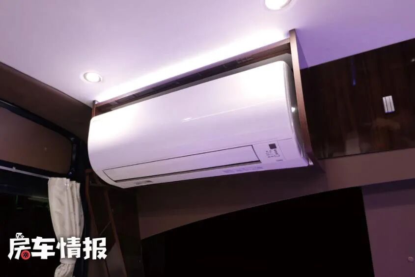 储物柜的上方安装了一台空调,供平时取暖使用,冬天也不怕寒冷。水电路方面,这款房车提供了29L的净水箱和29L的灰水箱,基本可以满足出游的用水要求。
