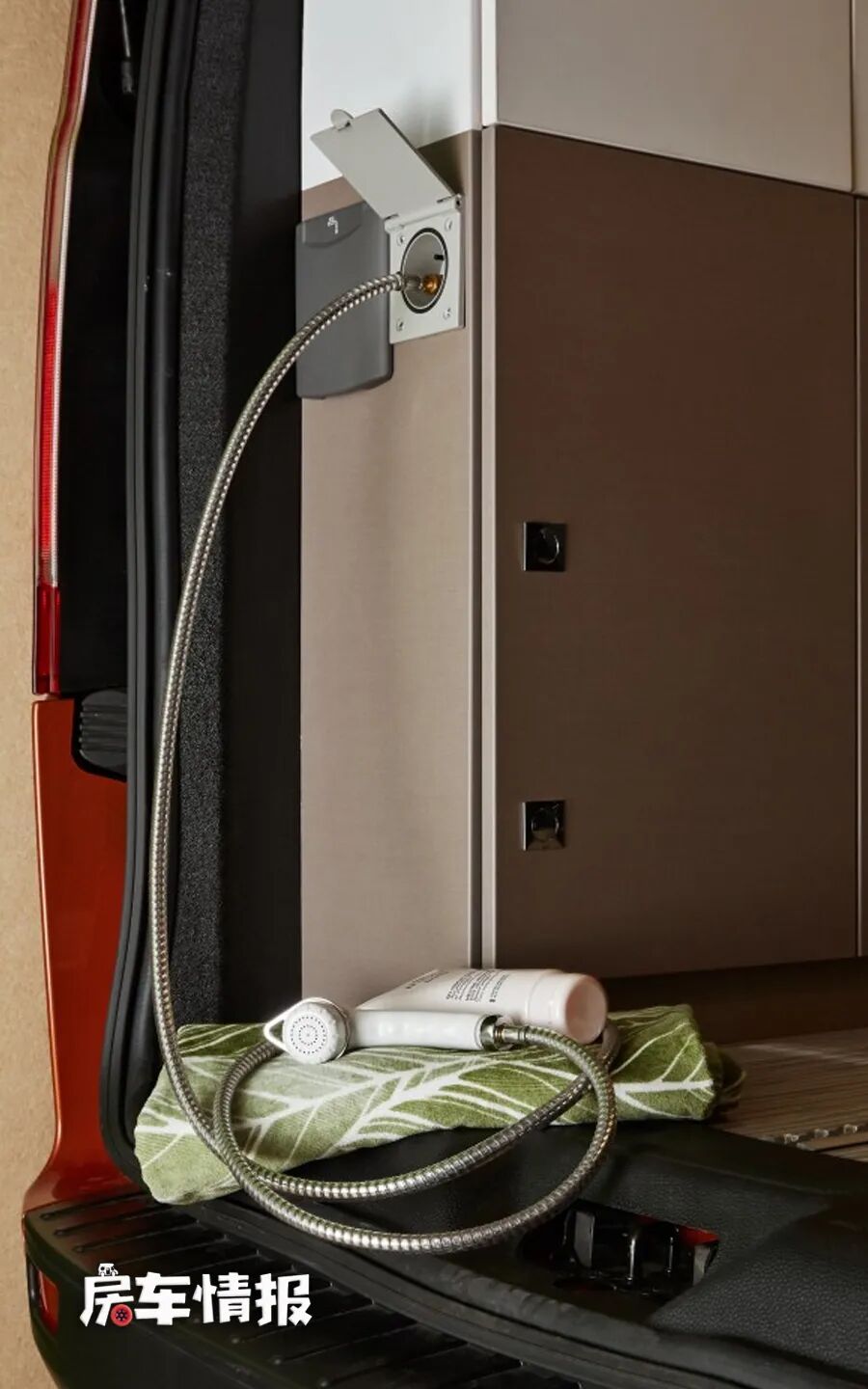 车厢内部虽然没有配备独立的卫浴区,但是在车厢外部提供了室外淋浴设施,基本可以满足出行的需求。