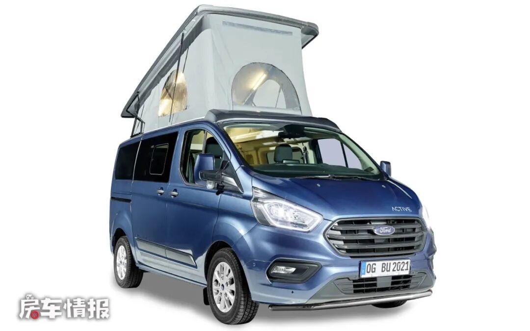 这款房车是基于福特全顺底盘改造的,全车尺寸没有发生改变,整车依旧是长4970mm,同时在车顶部配备了一个可升降的顶棚,以增大车内部的生活使用空间。