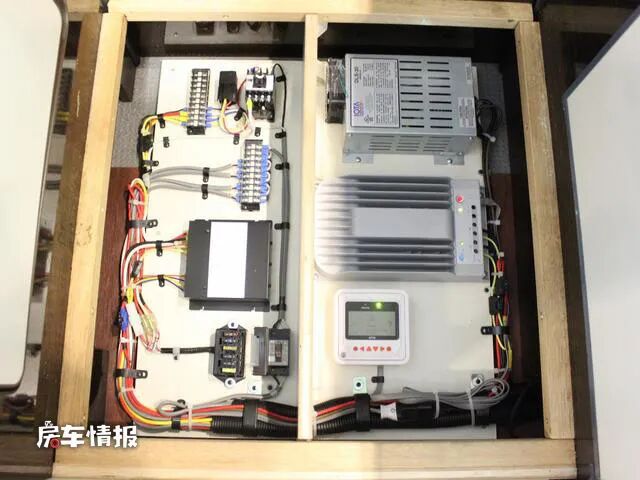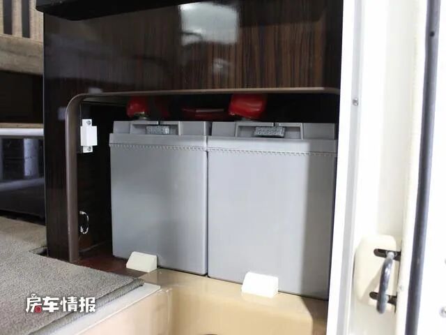 最后说一下整车水电,电路方面,该车搭载了300W的逆变器、两个蓄电池和太阳能电池板,水路方面则提供了20L的净水箱,还是非常小的。此外,整车还配备了Webasto FF加热器,即使停车后,也可以持续供暖。