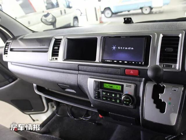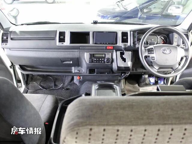 驾驶室的内部依旧沿用了丰田海狮的原始设计,搭配了一个多功能的方向盘,中控台也配备了一个彩色显示屏。