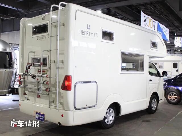 这款房车是基于丰田海狮底盘打造的,外观采用了圆角设计,整体看起来更加的平易近人。整车以白色为基调,长宽高的尺寸为5360*2130*3040(mm)。