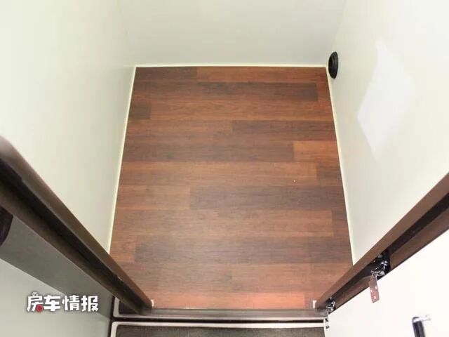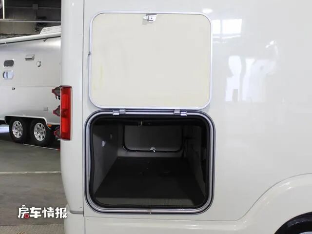 这款房车比较奇怪的一点是在会客区的后面提供了一个空置的房间,按平时C型车的内部布局来说,这里应该是一个卫浴室,但是这款车的这个独立的房间里没有提供任何有关淋浴洗漱的设施,但是后期应该是可以选装的。