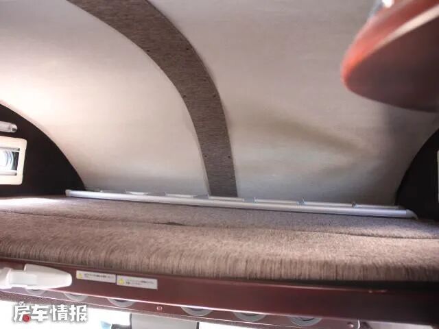 得益于小额头的设计,使得本车有了一个1600*2000mm的双人床,虽然垂直高度不是很高,但是也可以满足两个成年人的睡眠空间,两侧还各有一扇外推窗,可以为额头床通风、提供光照,在里面休息也不会很压抑。
