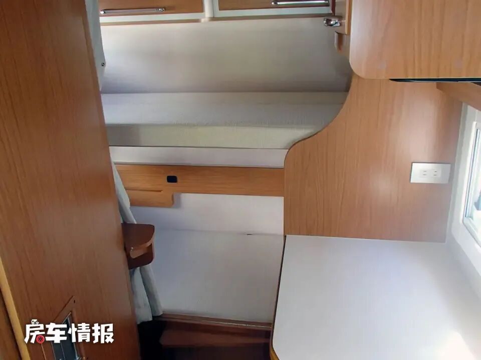 车尾的休息区采用了横置上下床的设计,上铺尺寸为1800*800(mm),下铺尺寸为1800*850(mm),平时可以容纳两名成年人休息使用。