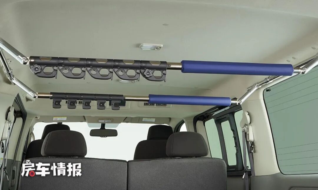 另外这款房车还提供了一个移动配件组,这个配件组包括内部顶棚钓鱼竿、冲浪板架、后挡板遮阳篷和后挡板毛巾架等配置,非常适合爱好户外运动的朋友们。