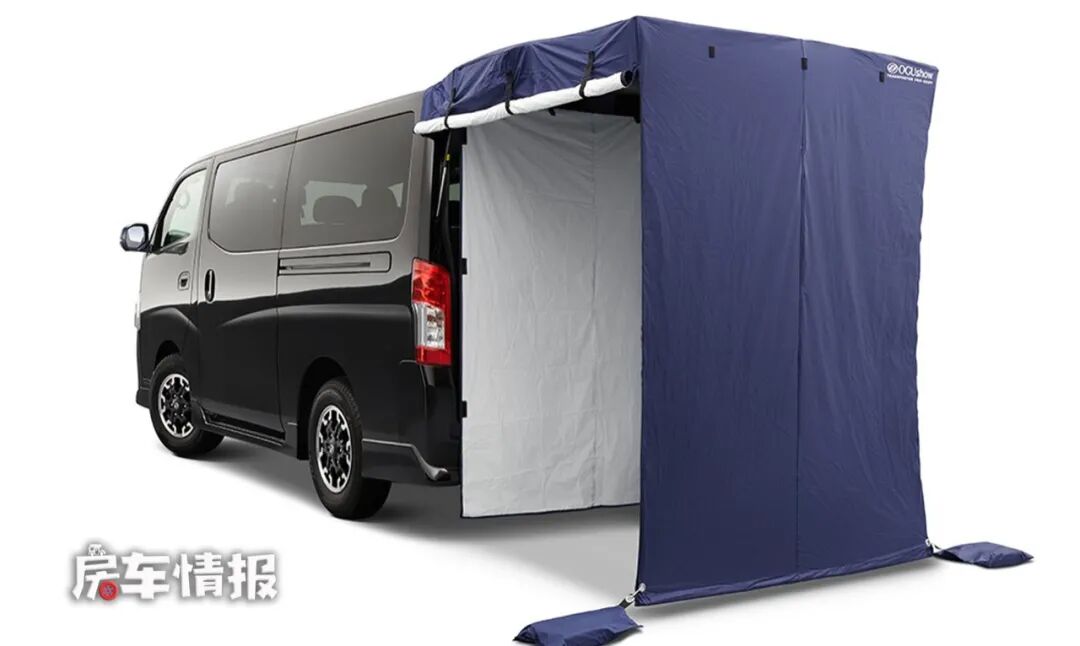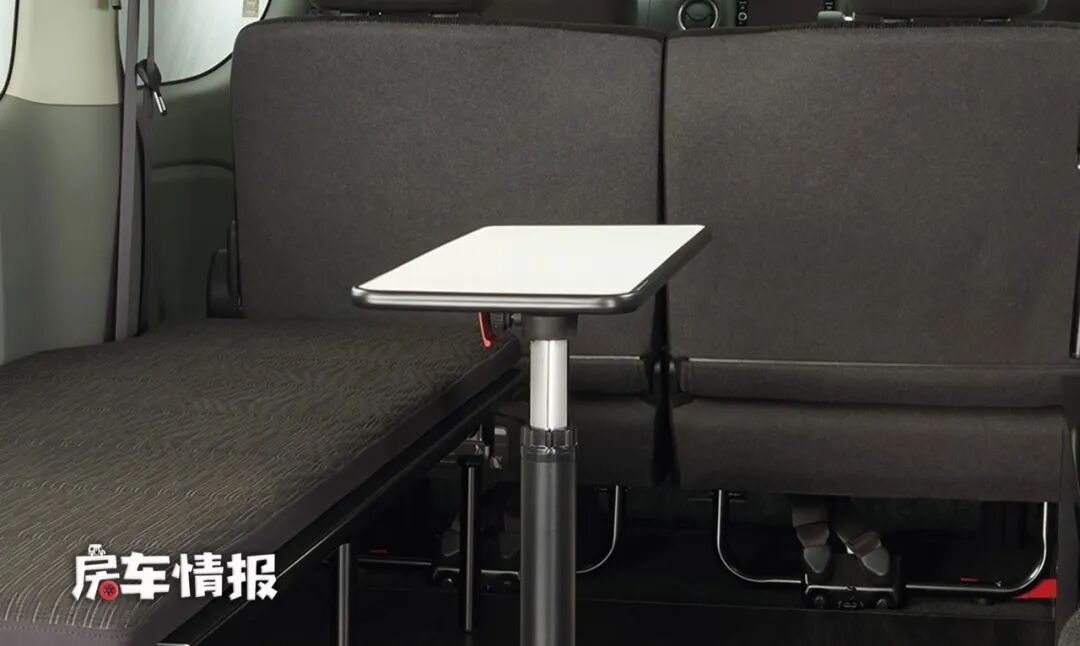 这款房车算上驾驶室共有五个座位,平时可以携带一个五口之家,但是全车只提供了一张床铺,其余的人需要一个单独的帐篷才能休息过夜,所以这款房车也提供了一个外接帐篷,从而扩大内部的休息区,这其实和我们之前介绍过的一款大众房车非常的相似。