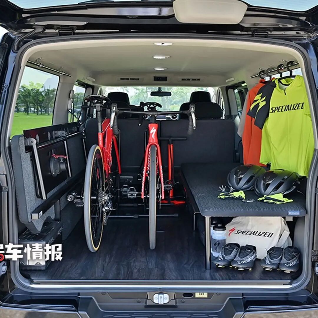 平时需要储存行李时,左右长凳可以靠墙折叠,框架腿也可以完全收起来,这样可以最大限度的扩大储物空间,不仅能够装载行李,还可以放一些其他运动装备,比如自行车等。