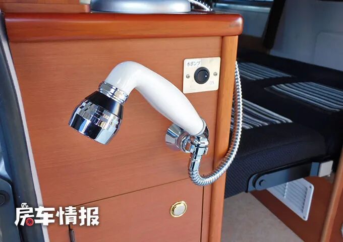 另外在这个橱柜的尾部还配备了一个可拉伸的淋浴花洒,能简单地冲洗,但是想要达到完全淋浴还是不太可能的。