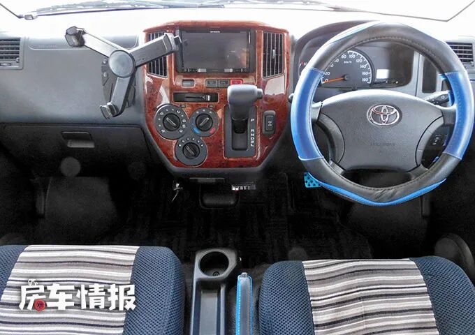 这款房车是基于丰田客车底盘改造的,全车的总长度为4060mm,总宽度为1660mm,总高度为1930mm,从外观上看这就是一辆普通的家用小面包,车身非常的小巧。