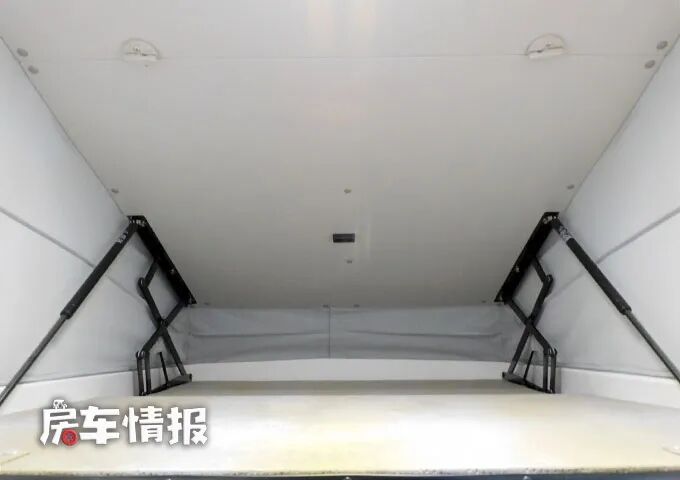 除去沙发床之外,在顶部的升顶内也提供了一张升顶床,尺寸并不是很大,但也可以满足一个成年人在这里休息使用。