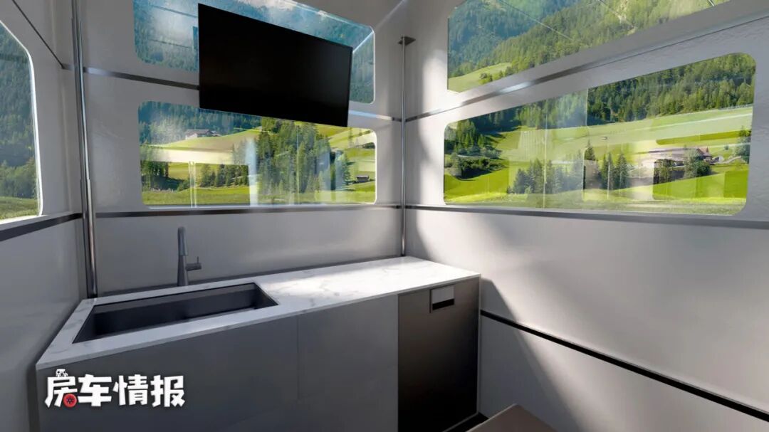 除去生活区所需的基本设备之外,这款车也提供了全车Wi-Fi,并且是通过语音控制系统来控制全车的温度和照明的。