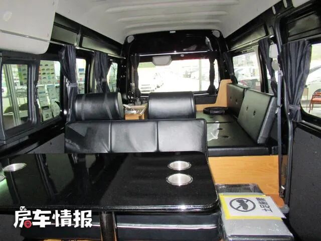 驾驶室依旧是保持原有的设计风格,中控台配备了一个彩色显示屏,主副驾驶座椅之间不仅提供了一个大尺寸的中央扶手箱,主驾驶还单独配备了一个皮质翻盖的扶手箱,缓解驾驶时肘部的疲劳感。另外在安全系方面,这款房车配备了ABS、安全气囊和后置摄像头等,提升整车的安全系数。