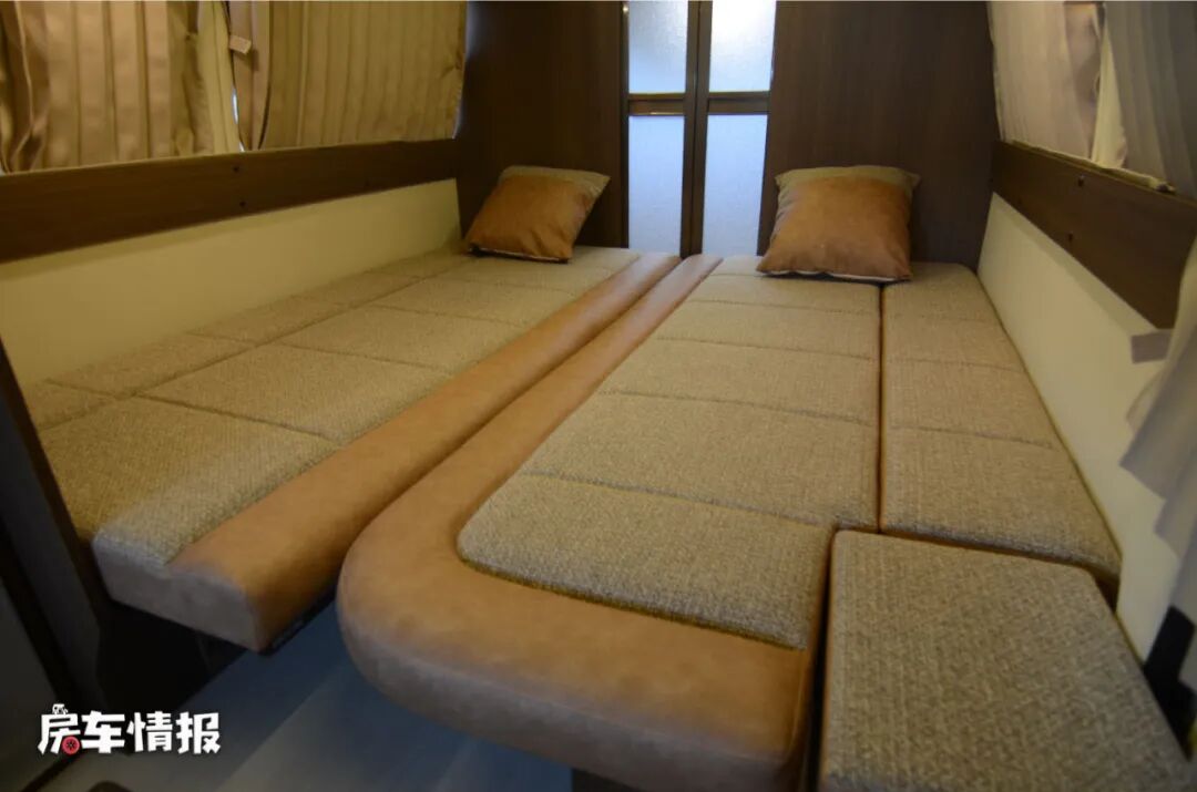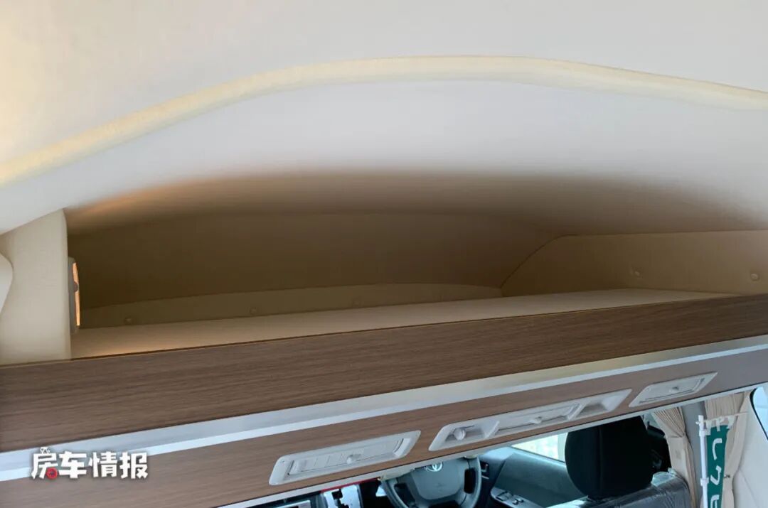 在前方驾驶室的顶部还有一个类似于额头的区域,虽然空间并不适合作为额头床使用,但是平时可以在这里存放一下衣物或被褥。