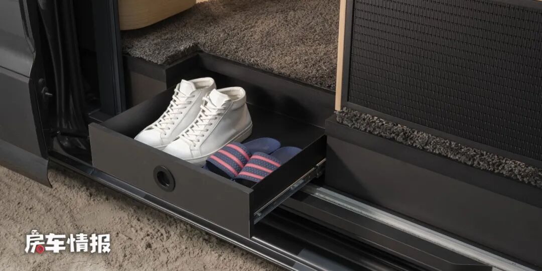这款房车搭载了一台2000W的逆变器,提供了100Ah锂电池,并配备320W太阳能充电系统。车厢内部还提供多个USB和230V插座,并且配备了带有移动应用程序连接功能的智能家居控制系统,平时也可以上网。除此之外,全车水龙头都提供热水,使用起来也比较的方便。