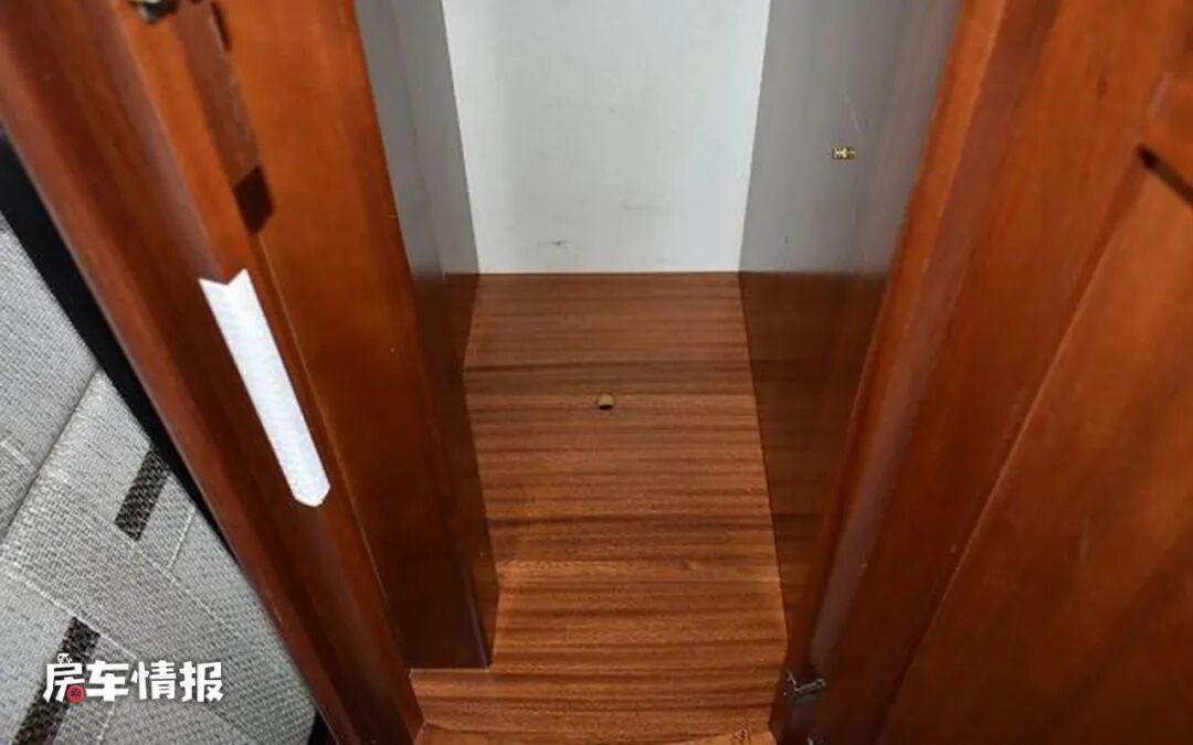 厨房区的对面是一间空置的房间,之前有说过,日本早先的房车是不提供卫浴设施的,但是在房车内部会提供一个带有下水口的房间,可以根据后期需求自行加装。