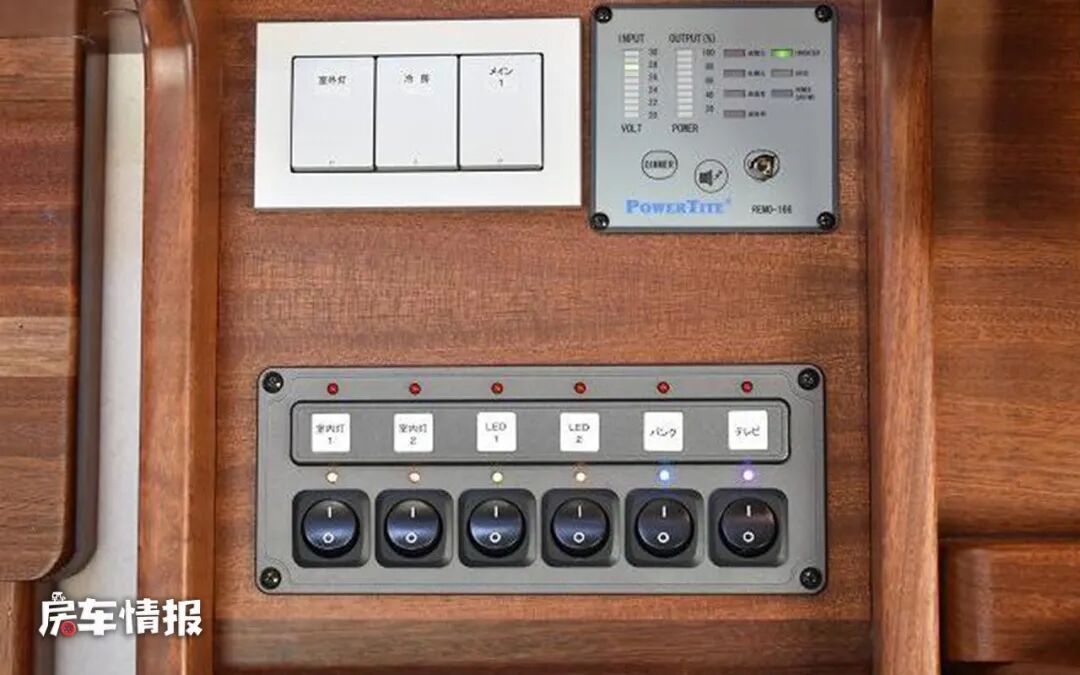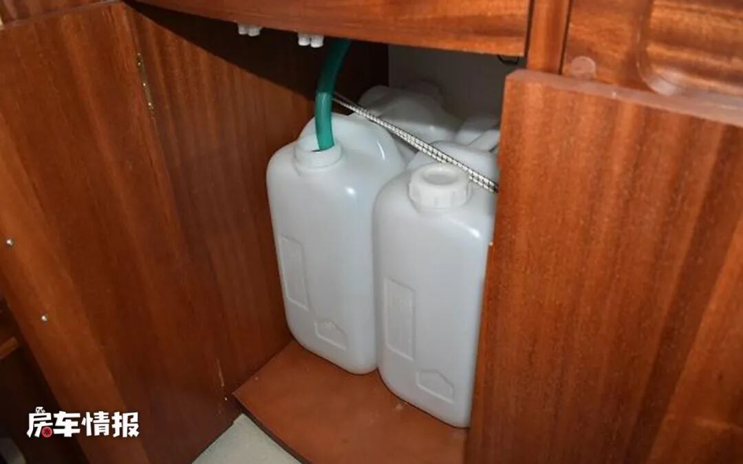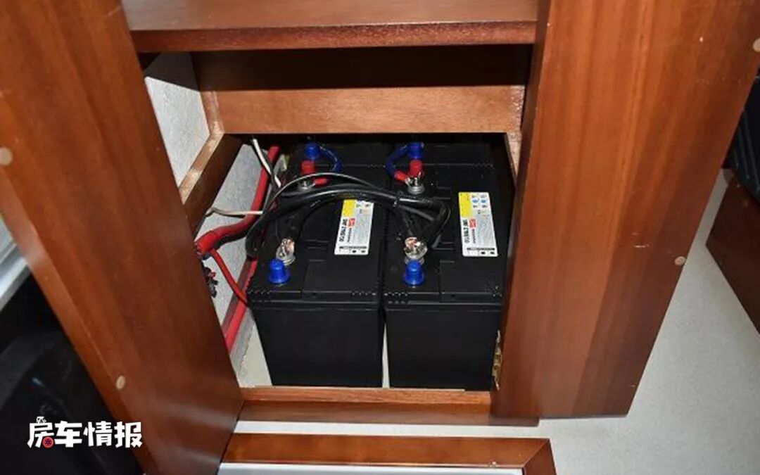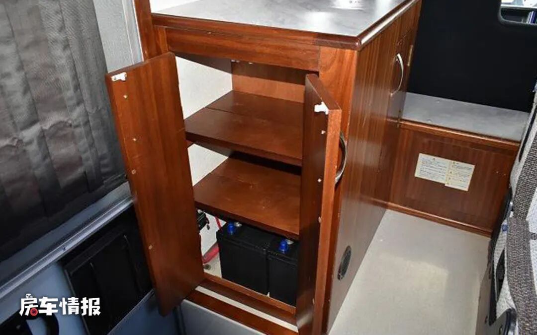 水电方面,这款房车搭载了一台1500W的逆变器,提供了四个副电池,并配备了太阳能电池板,水路上则提供了净水箱和污水箱。
