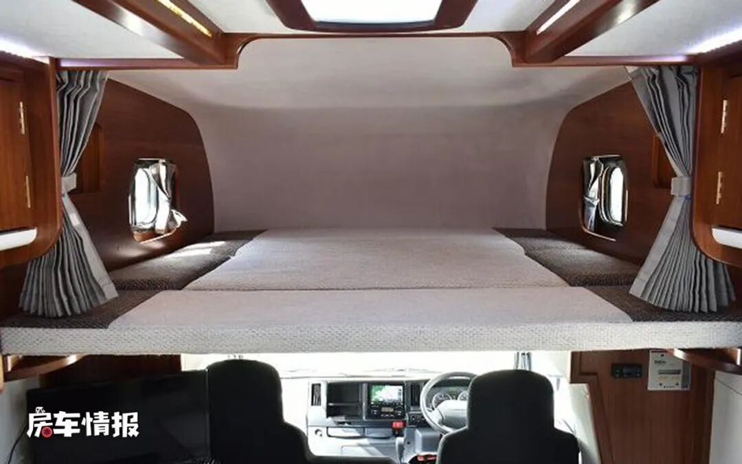 除去沙发床和尾床,在前方驾驶室上方的额头里还提供了一张双人床,空间也非常的宽敞。
