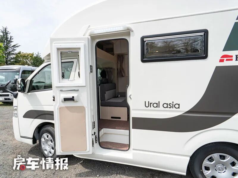 这款房车是基于丰田海狮底盘打造的,全车的长宽高尺寸为4820mm*1920mm*2690mm,整体的尺寸相较于国内的C型房车来说还是比较小巧的,车身总长居然都不到5米,不知道在这么狭小的空间内是如何设计布局的。