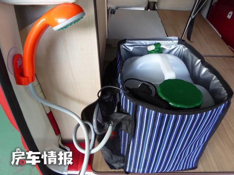 同时这款房车在尾门处还提供了一个简易的淋浴花洒,平时可以冲洗一下瓜果蔬菜,也可以简单的洗漱。