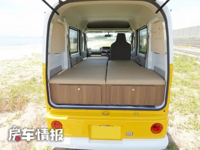 这款房车是基于铃木EveryVan底盘打造的,全车的长宽高分别为3395mm*1475mm*1910mm,车型非常的小巧,总长度都不到4米,想必平时驾驶起来也和家用车一样便于操控,女孩子开起来也会得心应手。