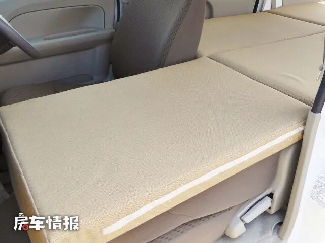 将后排的座椅放倒后,与后方的床垫组合起来可以拼接成一张尺寸为1800mm*1360mm的双人床,尺寸相比一般C型房车里的双人床还要宽敞,如果乘客中有身材高挑的人,也可以将副驾驶的座位放倒,将床铺的一边延长至2500mm,可以提供足够宽敞的休息空间。