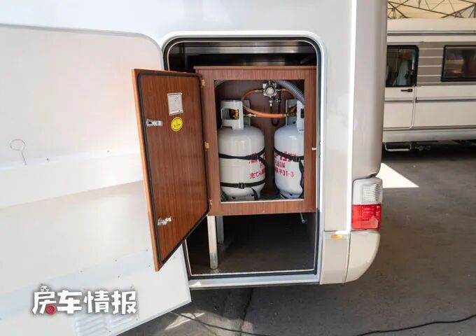 车身右侧不仅提供了一个遮阳棚,在后部还提供了一个超大尺寸的行李舱,即使放多件行李也完全够用,另外整车的车尾部还配置了一个爬梯,方便平时到车顶进行检查。