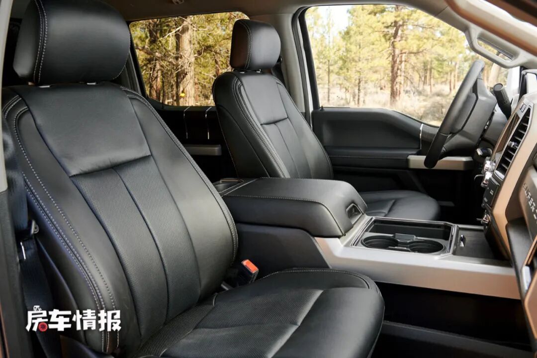 这款房车采用的是双排座椅的设计,前排为主副驾驶座椅,后排为乘客座椅,座椅全部使用皮质软包的工艺,乘坐起来也非常的舒适,缓解了恶劣路面带来的颠簸问题。动力上搭载的是一台6.2L V8汽油发动机。